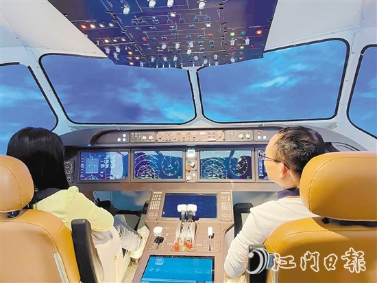 在飛行教員的指導(dǎo)下,記者過(guò)了一把當(dāng)“飛行員”的癮,推動(dòng)節(jié)流閥,讓飛機(jī)在跑道上加速……達(dá)到合適的速度后,緩緩拉起操縱桿,飛機(jī)起飛成功!“這是主題館沉浸式體驗(yàn)的一個(gè)重頭戲,可實(shí)現(xiàn)對(duì)國(guó)產(chǎn)大飛機(jī)的高精度飛行模擬,讓觀眾身臨其境體驗(yàn)駕駛飛機(jī)翱翔云端的樂(lè)趣,同時(shí)學(xué)習(xí)航空基礎(chǔ)知識(shí)和技能。”張紅玲說(shuō)。