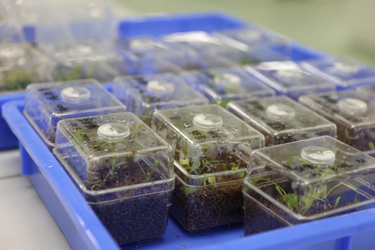 2022年4月10日拍攝的三亞崖州灣科技城種子實(shí)驗(yàn)室的植物幼苗。新華社記者 張麗蕓 攝