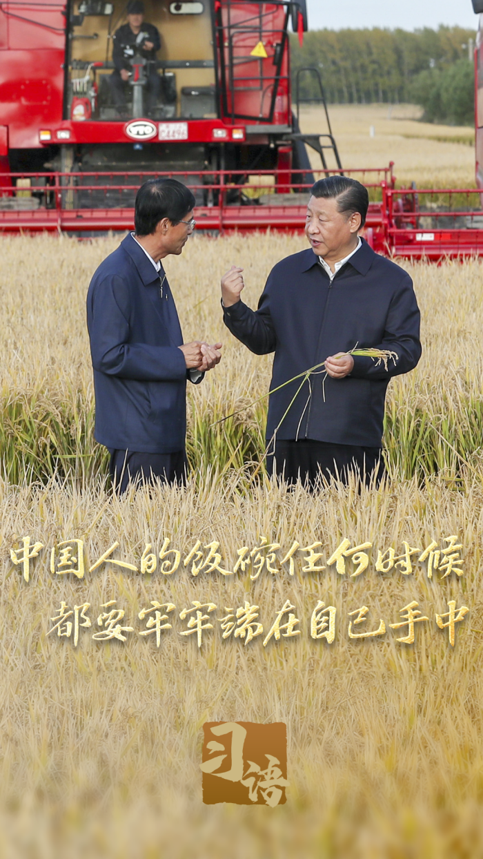 ??“堅(jiān)決守住18億畝耕地紅線”、“樹(shù)立大農(nóng)業(yè)觀、大食物觀”、“要健全種糧農(nóng)民收益保障機(jī)制”、“要落實(shí)藏糧于地、藏糧于技戰(zhàn)略”、“集中力量破難題、補(bǔ)短板、強(qiáng)優(yōu)勢(shì)、控風(fēng)險(xiǎn),實(shí)現(xiàn)種業(yè)科技自立自強(qiáng)、種源自主可控”……習(xí)近平總書(shū)記對(duì)端牢中國(guó)飯碗作出一系列部署,他強(qiáng)調(diào):“我國(guó)有14億多人口,糧食安全必須靠我們自己保證,中國(guó)人的飯碗應(yīng)該主要裝中國(guó)糧。”
