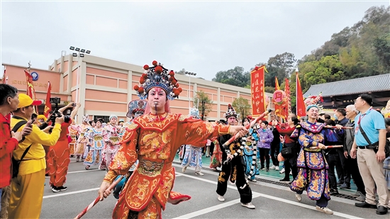 ????同樣被潮連洪圣廟會吸引的,還有來自廣西、目前在潮連工作居住的許女士?!斑@些民俗表演真是太精彩了,現(xiàn)場氛圍既熱鬧又喜慶?!痹S女士贊不絕口。