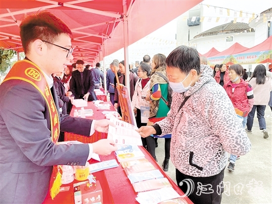 進(jìn)農(nóng)村,既富口袋也護(hù)好“錢袋”。工行江門開平支行走進(jìn)塘口鎮(zhèn)天下糧倉廣場,開展“儲蓄國債惠僑鄉(xiāng) 普惠金融助振興”的金融知識宣傳活動,通過節(jié)目表演、有獎問答、上門派單及移動廣播等形式,為群眾普及金融知識,為鄉(xiāng)村振興貢獻(xiàn)金融力量。