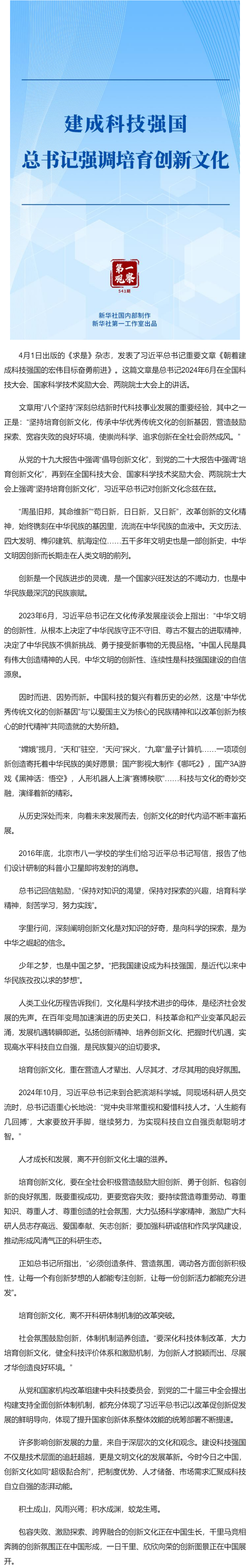 第一觀察|建成科技強(qiáng)國(guó),總書記強(qiáng)調(diào)培育創(chuàng)新文化
