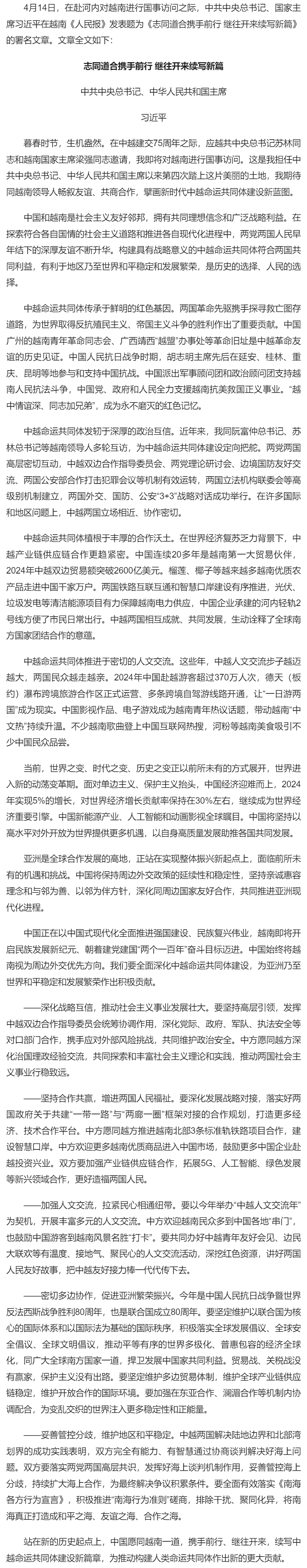 習(xí)近平在越南媒體發(fā)表署名文章