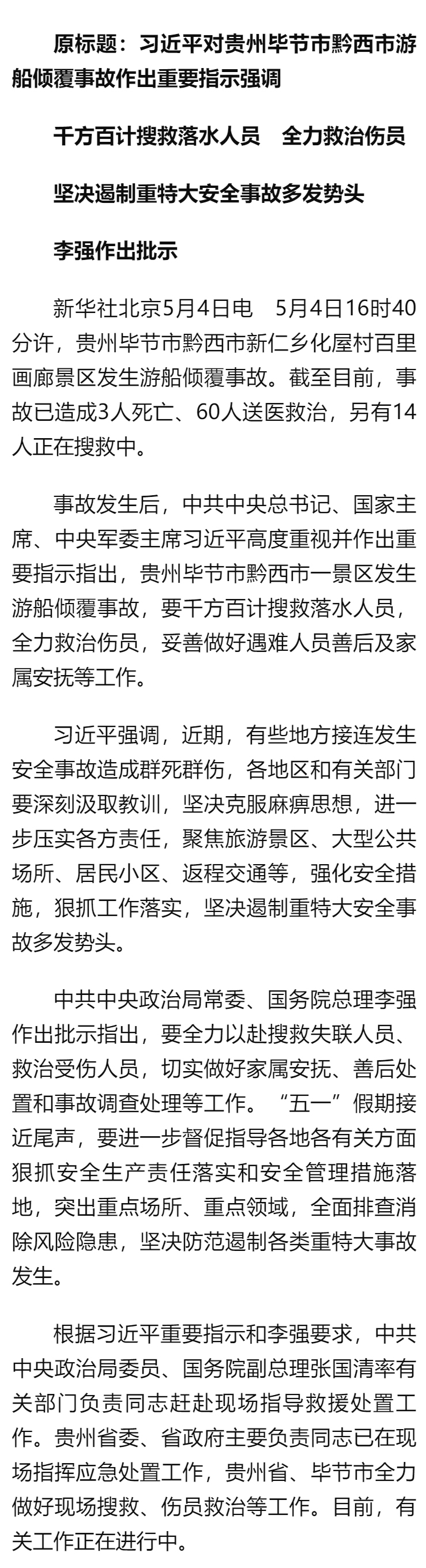 習(xí)近平對(duì)貴州畢節(jié)市黔西市游船傾覆事故作出重要指示