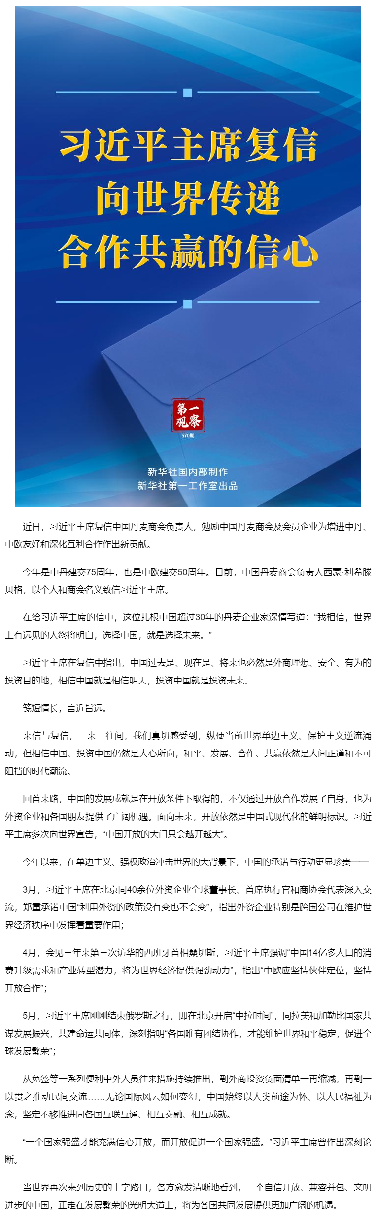 第一觀察 | 習(xí)近平主席復(fù)信向世界傳遞合作共贏的信心