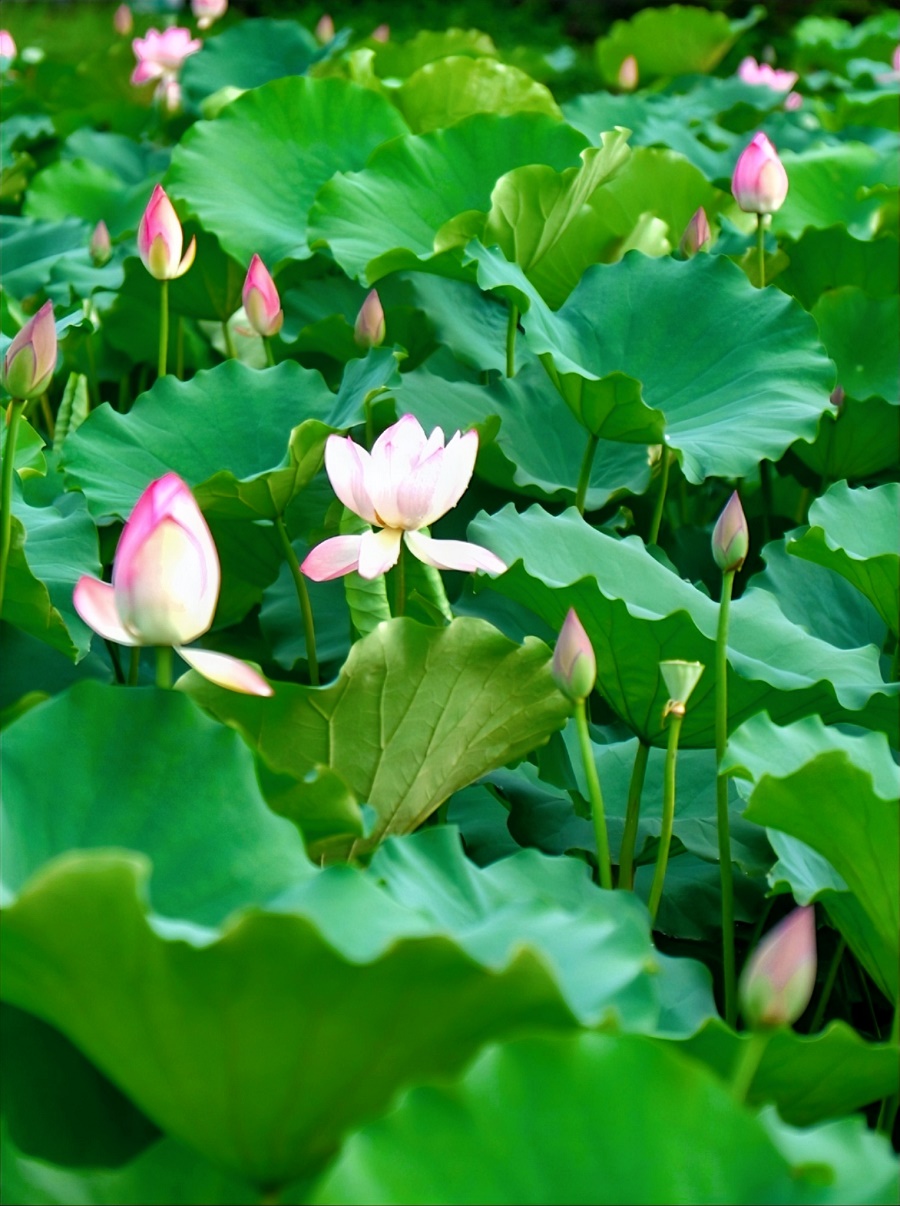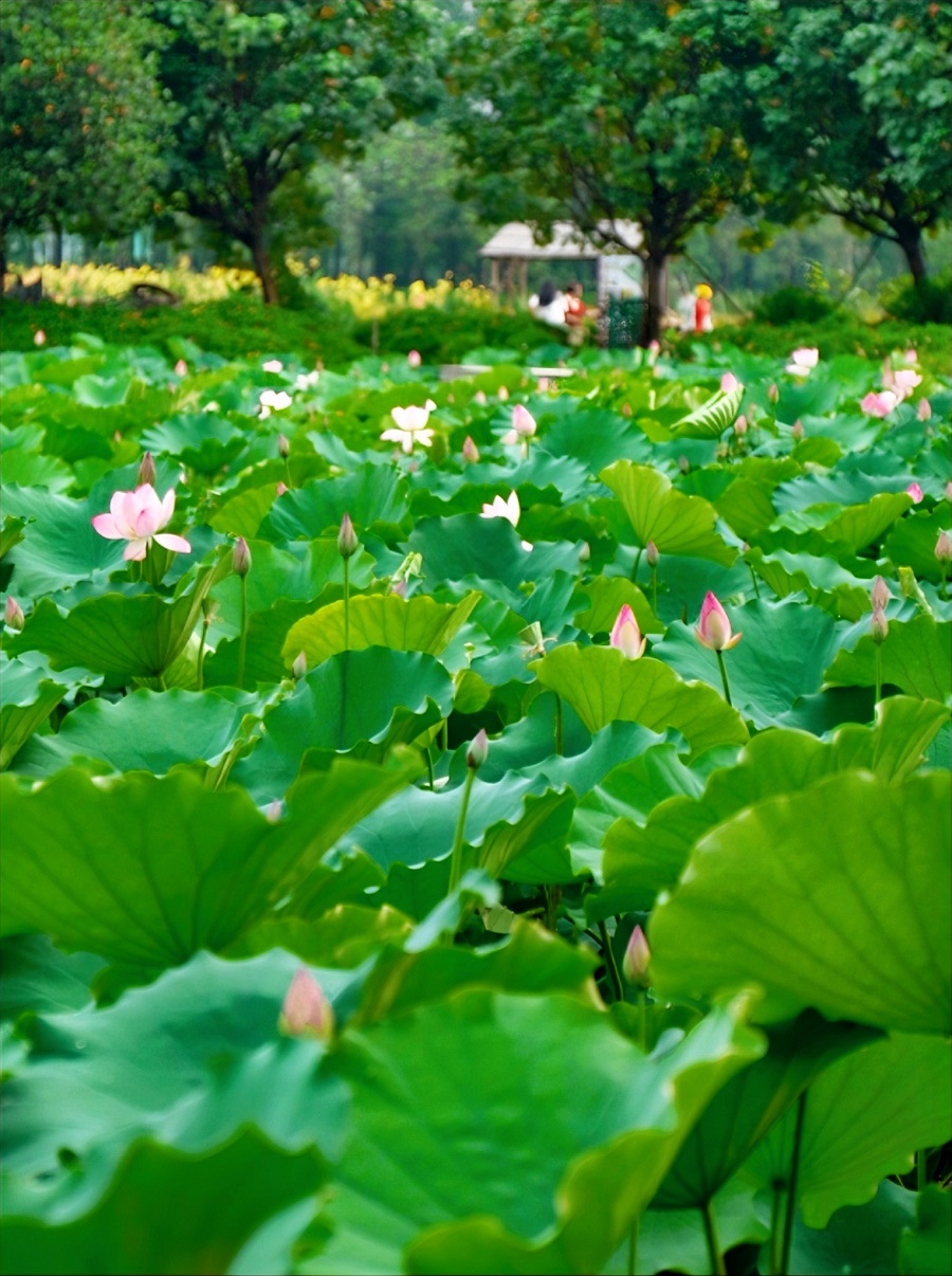 ????江門日?qǐng)?bào)訊 (記者/陳嬋) “小滿溫和夏意濃,麥仁滿粒量還輕。”小滿時(shí)節(jié),萬物漸豐,江海都市農(nóng)業(yè)生態(tài)園12萬平方米的荷塘,已然奏響了初夏的浪漫序曲,為市民送上入夏的第一波美景。????步入江海都市農(nóng)業(yè)生態(tài)園,眼前是“接天蓮葉無窮碧”的盛景,層層荷葉鋪滿池塘,粉白荷花在綠意中漸次綻放,或“小荷才露尖尖角”,或“映日荷花別樣紅”。