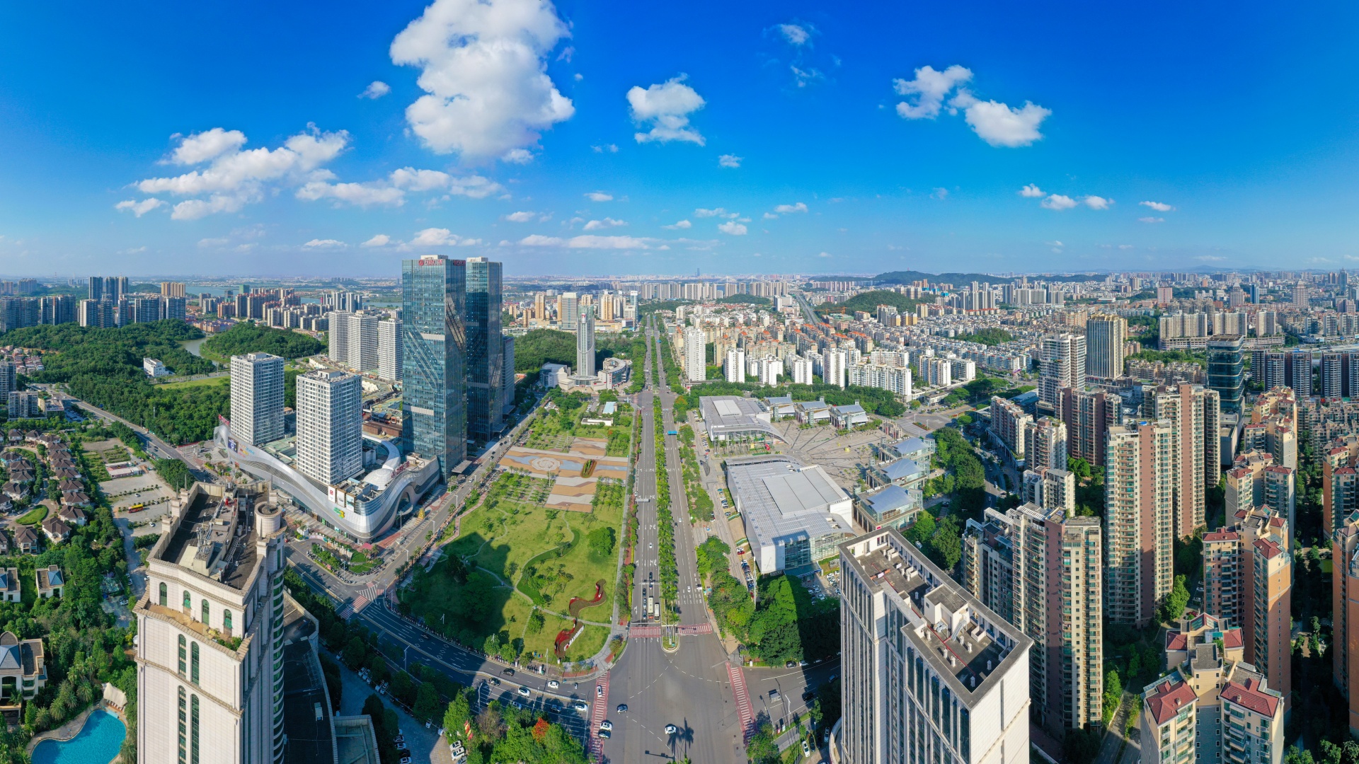 江門(mén)大力推動(dòng)物質(zhì)文明和精神文明協(xié)調(diào)發(fā)展,著力打造“文明形象的展示地”,城市品質(zhì)不斷提升。圖為環(huán)五邑華僑廣場(chǎng)商圈一帶。郭永樂(lè) 攝