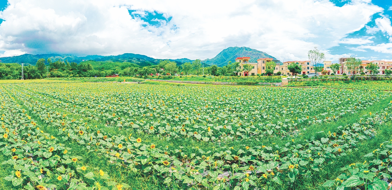 長春花、蘇丹鳳仙花等多種鮮花映襯著大片的向日葵花田,讓城西村成為一片花的海洋。