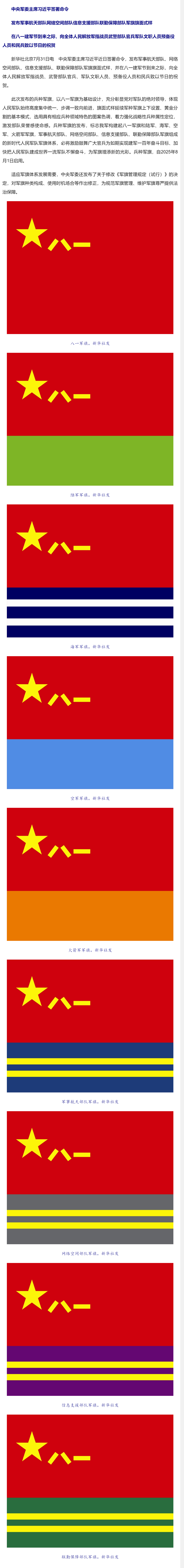 中央軍委主席習近平簽署命令 發(fā)布軍事航天部隊網(wǎng)絡(luò)空間部隊信息支援部隊聯(lián)勤保障部隊軍旗旗面式樣