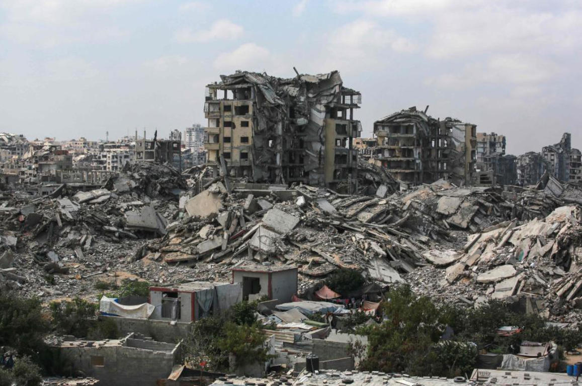 ??這是8月8日拍攝的加沙城的帳篷以及損毀的建筑。新華社/法新