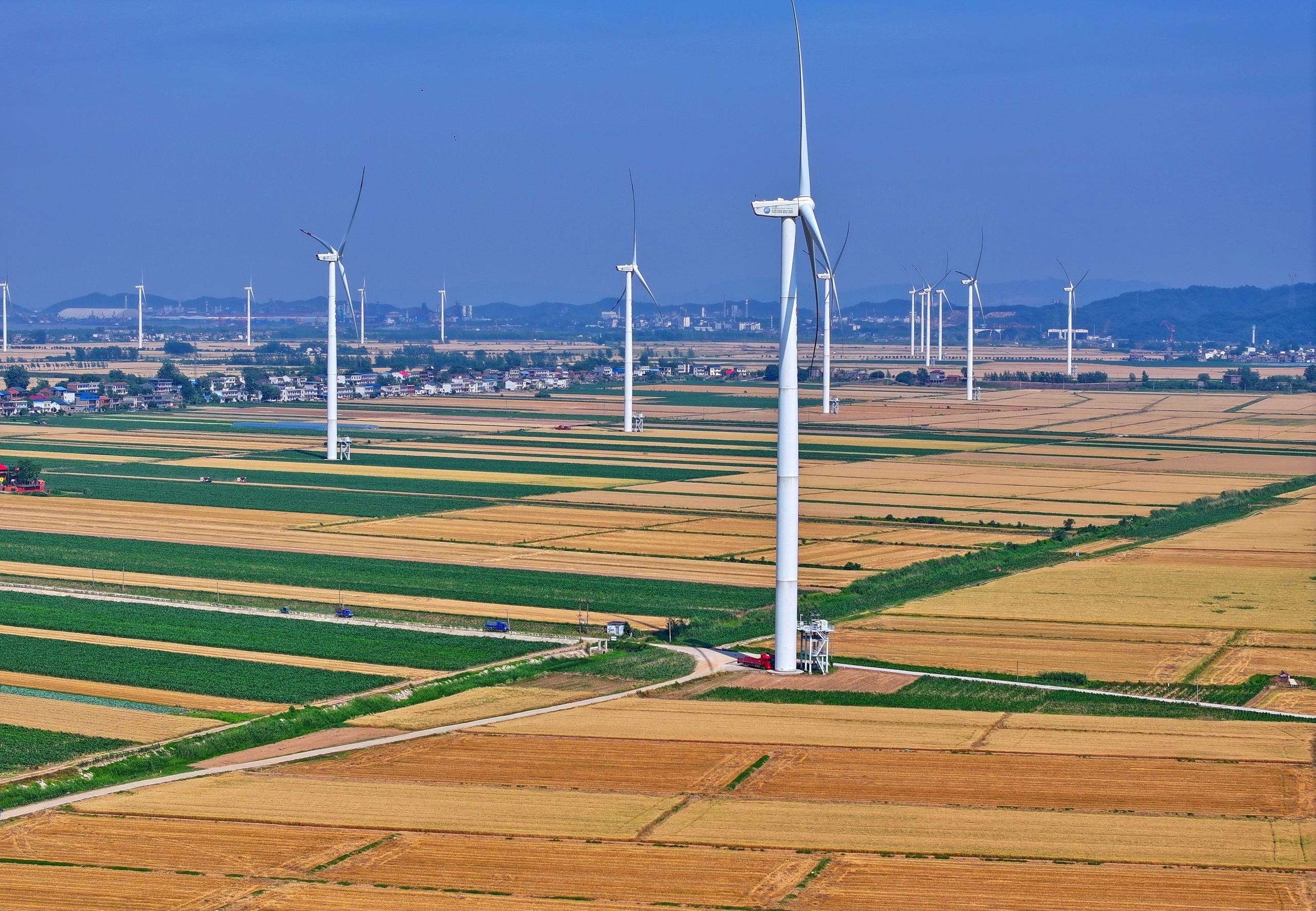 ??△江西九江長江沿岸的風(fēng)力發(fā)電機