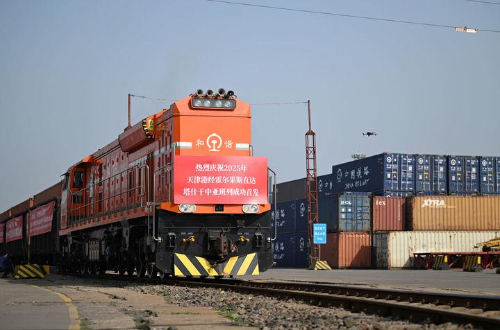 ??△2025年5月20日,2025年首列天津港經(jīng)霍爾果斯直達(dá)塔什干的中亞班列從天津港物捷三堆場發(fā)車。
