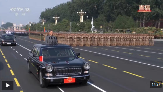 在雄壯的軍樂聲中,習(xí)近平乘車沿著寬闊的長(zhǎng)安街,依次檢閱徒步方隊(duì)和裝備方隊(duì)。