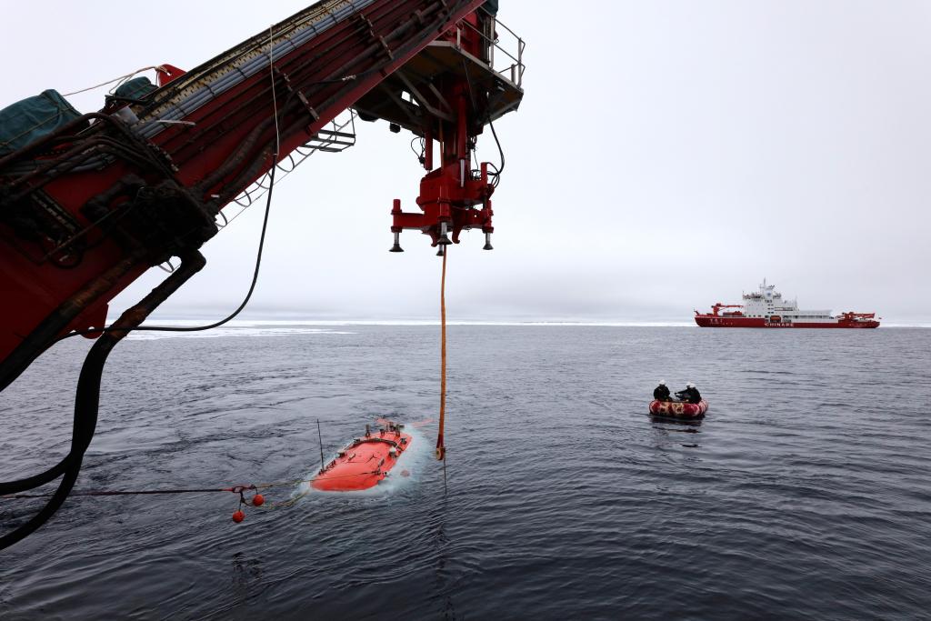 ??中國大洋92航次第一航段由“深海一號”攜“蛟龍”號于2025年7月15日從青島起航,9月8日返回青島。在“雪龍2”號極地科考破冰船破冰保障下,本航段在北極海域進行了“蛟龍”號載人深潛、ROV調查和CTD(溫鹽深剖面儀)采水等作業(yè)。