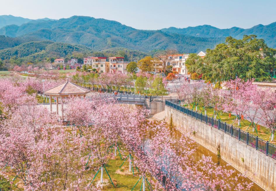 櫻花河堤位于城西村范屋、謝屋村,是進(jìn)入七甕井景區(qū)的必經(jīng)之路。特約攝影師歐蕊榮 攝