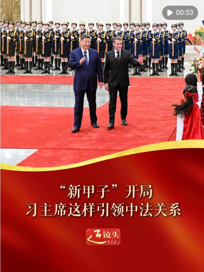 ??從長時間深入會談到共同見證簽署多項(xiàng)合作文件,從共同會見中外記者到共同出席中法企業(yè)家委員會第七次會議閉幕式……元首外交戰(zhàn)略引領(lǐng),讓中法全面戰(zhàn)略伙伴關(guān)系在“新甲子”走得更穩(wěn)更好。