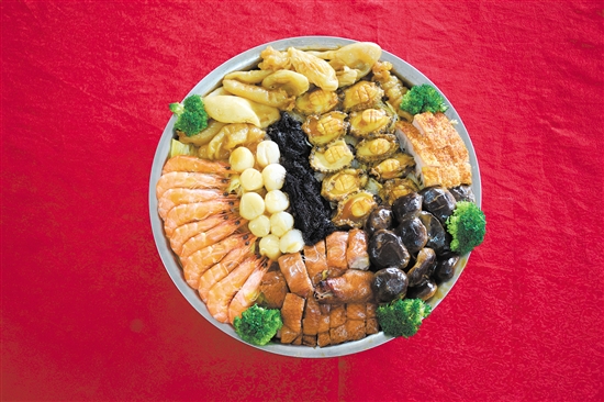 盆菜,“一盆一宴,薈萃百味”,因多盛于木盆或錫盆而得名。據(jù)傳起源于南宋末年,當(dāng)?shù)孛癖妼⒓抑凶钫滟F的食物貢獻出來,“煮盆菜,犒皇師”流傳甚廣。經(jīng)過幾百年來南粵人的總結(jié)、精研與傳承,盆菜食材越來越講究、制作技藝越來越精湛。