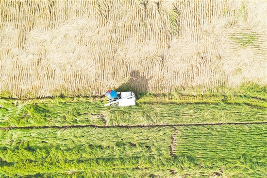 新會(huì)區(qū)大鰲鎮(zhèn)農(nóng)業(yè)發(fā)達(dá),土地肥沃,水質(zhì)優(yōu)良,是著名的“魚米之鄉(xiāng)”。近日,大鰲鎮(zhèn)早造水稻陸續(xù)收割,奏響了豐收的序曲。記者在大鰲鎮(zhèn)新一村、東風(fēng)村、大鰲尾村等地見到,稻田一片金黃,豐收在望,田野上機(jī)器轟隆,引來無數(shù)燕子在上空翩翩起舞。