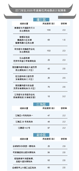 ????與新會區(qū)相比,蓬江區(qū)最受矚目的莫過于商住用地。蓬江區(qū)2025年計劃供應商住用地442畝,在三區(qū)中最多,共計8宗。